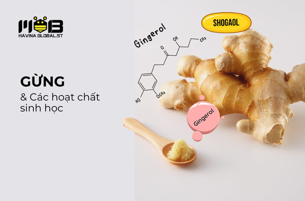 - Gừng và các hoạt chất sinh học: Gừng chứa gingerol và shogaol, những hợp chất có khả năng chống viêm, chống oxy hóa. Một nghiên cứu trên Frontiers in Immunology (2024) cho thấy 6-gingerol có tác dụng điều hòa các cytokine gây viêm, giúp giảm phản ứng viêm trong cơ thể. Gừng cũng được chứng minh là có thể hỗ trợ giảm buồn nôn và cải thiện tiêu hóa.