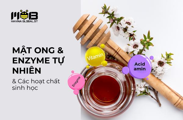 - Mật ong và enzyme tự nhiên: Mật ong giàu enzyme, acid amin, vitamin và chất chống oxy hóa. Theo nghiên cứu trên Frontiers in Nutrition (2021), mật ong có đặc tính kháng khuẩn tự nhiên, hỗ trợ hệ vi sinh đường ruột và cải thiện hệ miễn dịch.