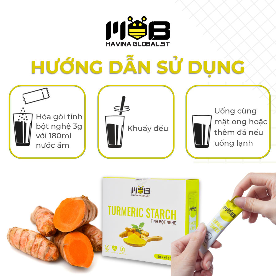 Tinh Bột Nghệ Havina - Dễ uống, giúp bụng nhẹ và da khỏe đẹpTinh bột nghệ từ lâu đã được ưa chuộng trong ẩm thực và chăm sóc sức khỏe...